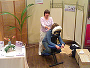 Am Massagestuhl: Shiatsu im Sitzen ist ideal für Senioren und für Berufsgestresste direkt am Arbeitsplatz. Dehnungen, Rotationen, leichtes Klopfen und Druck auf energetisch bedeutsame Körperstellen lassen den Körper in 25 min. entspannen und regenerieren.